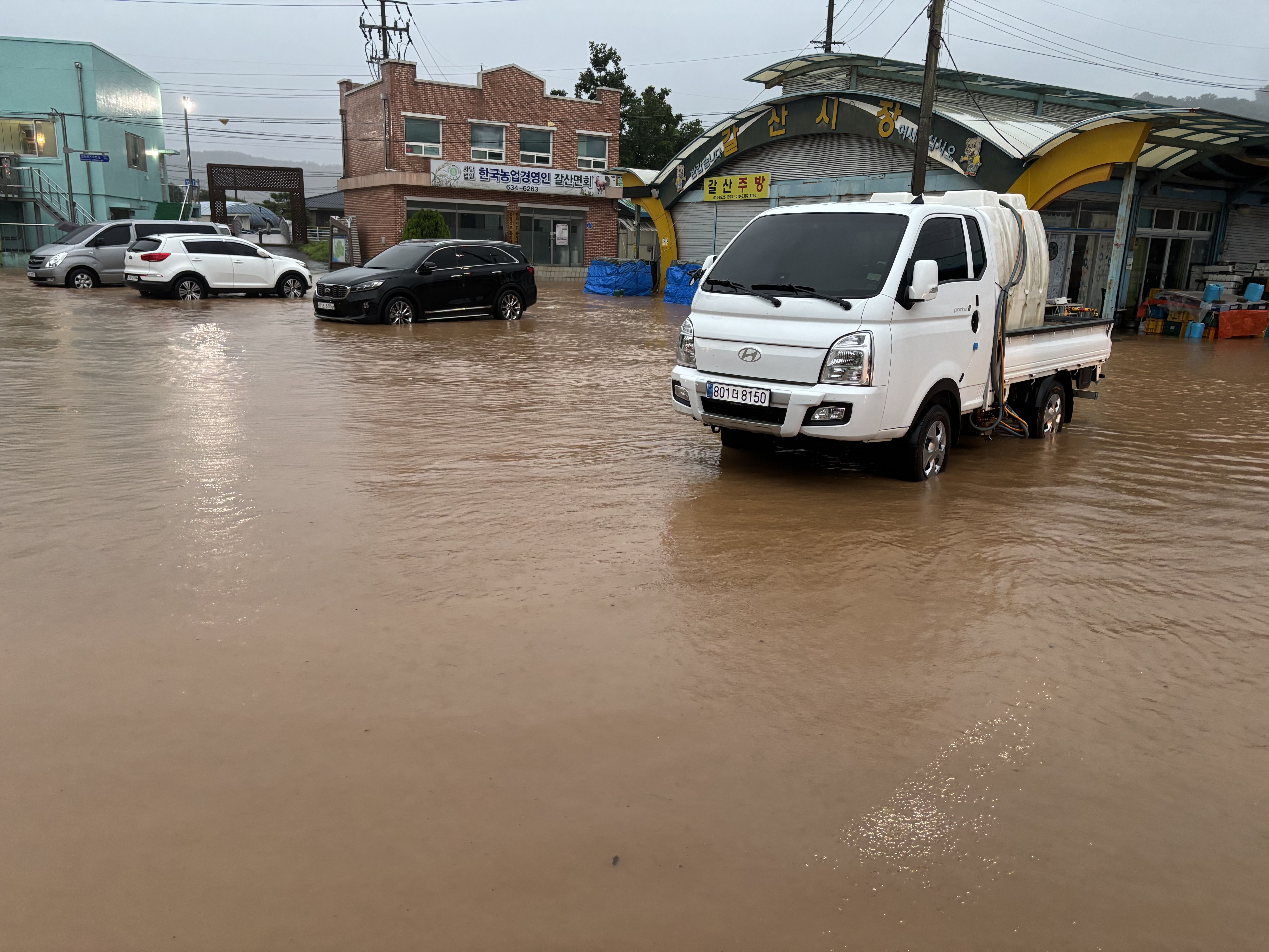 ▲ 갈산천 범람으로 갈산시장 침수 현장 (ⓒ 홍성군청)