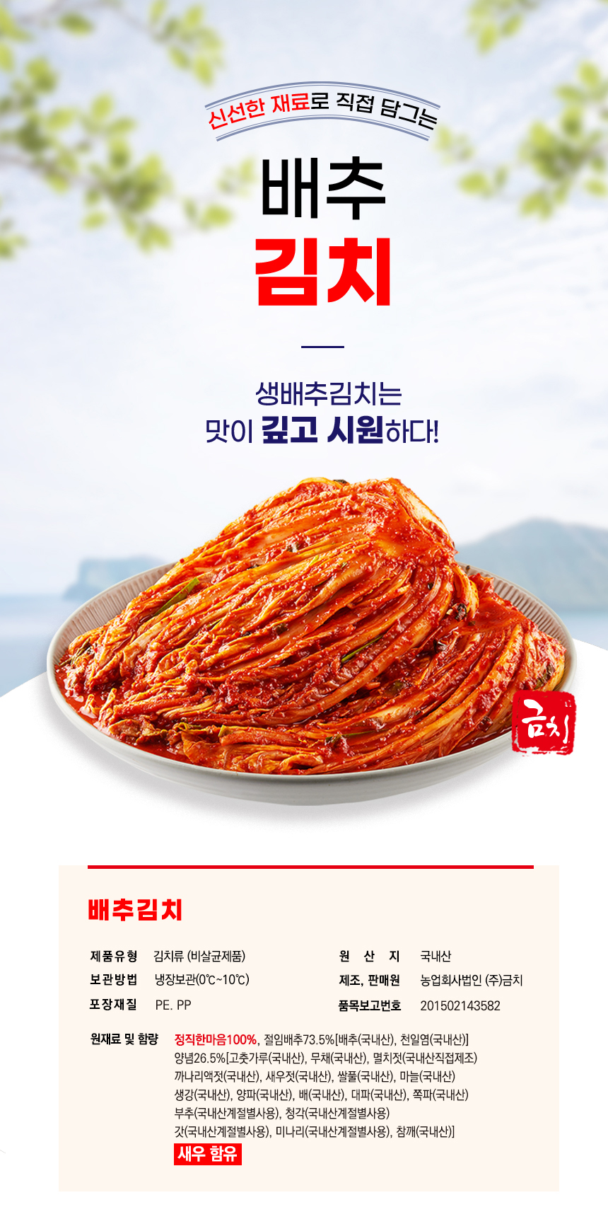 | 생산자 및 소재지(수입품의 경우 생산자, 수입자 및 제조국) | 농업회사법인(주)금치 |