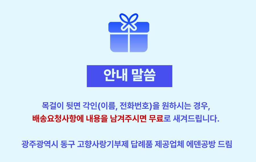 답례품에 관한 내용은 아래 답례품 제공자에게 연락 부탁드립니다.