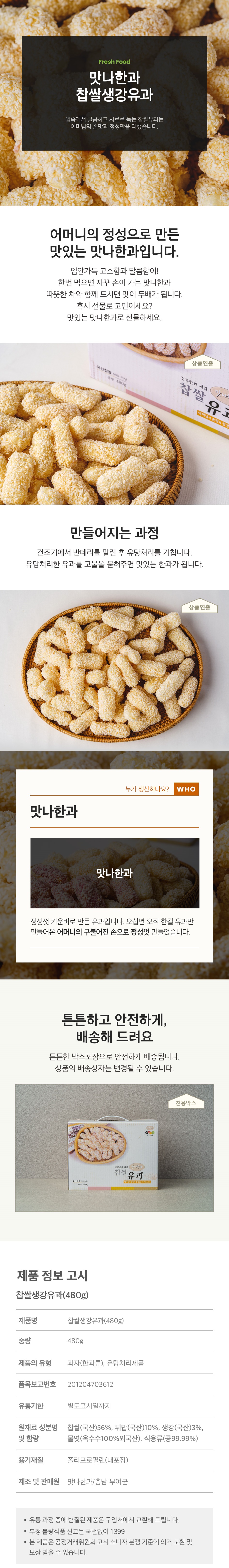 | 제품명 | 굿뜨래 찹쌀생강유과 480g |