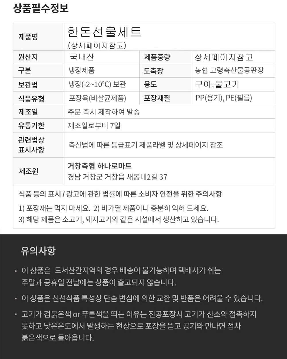 | 세부 품목군별 표시사항 | 상세정보 별도표기 |