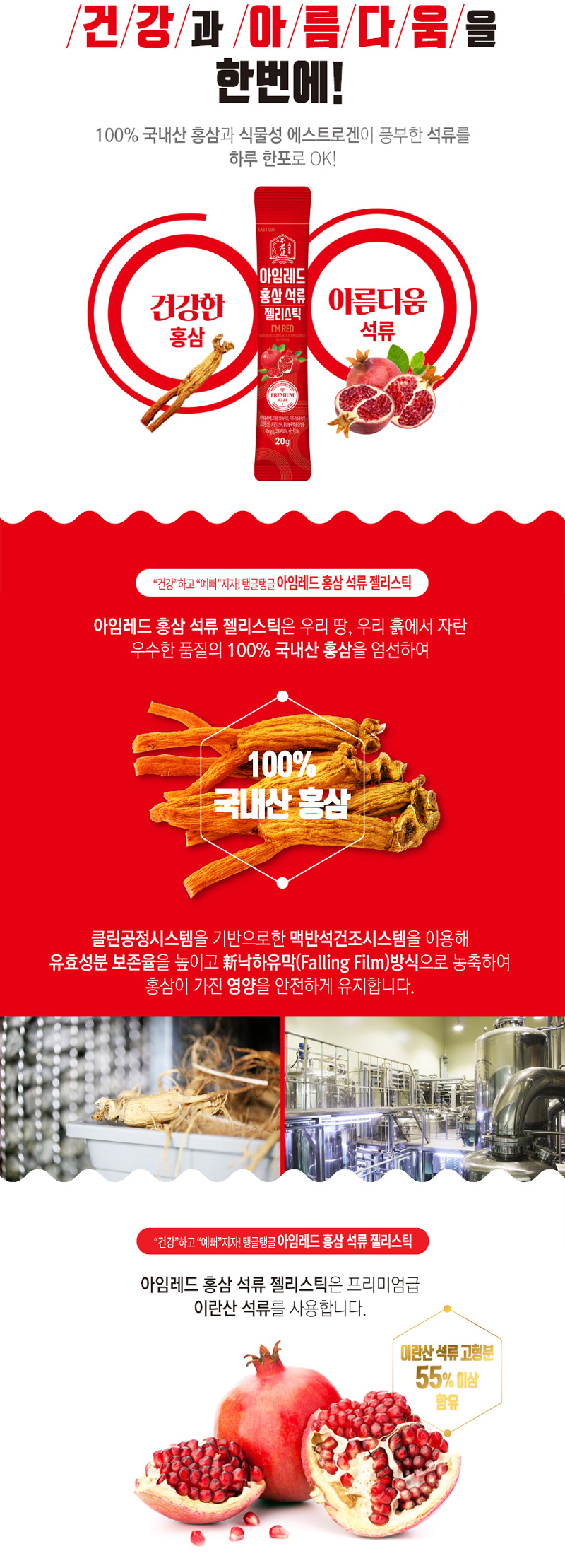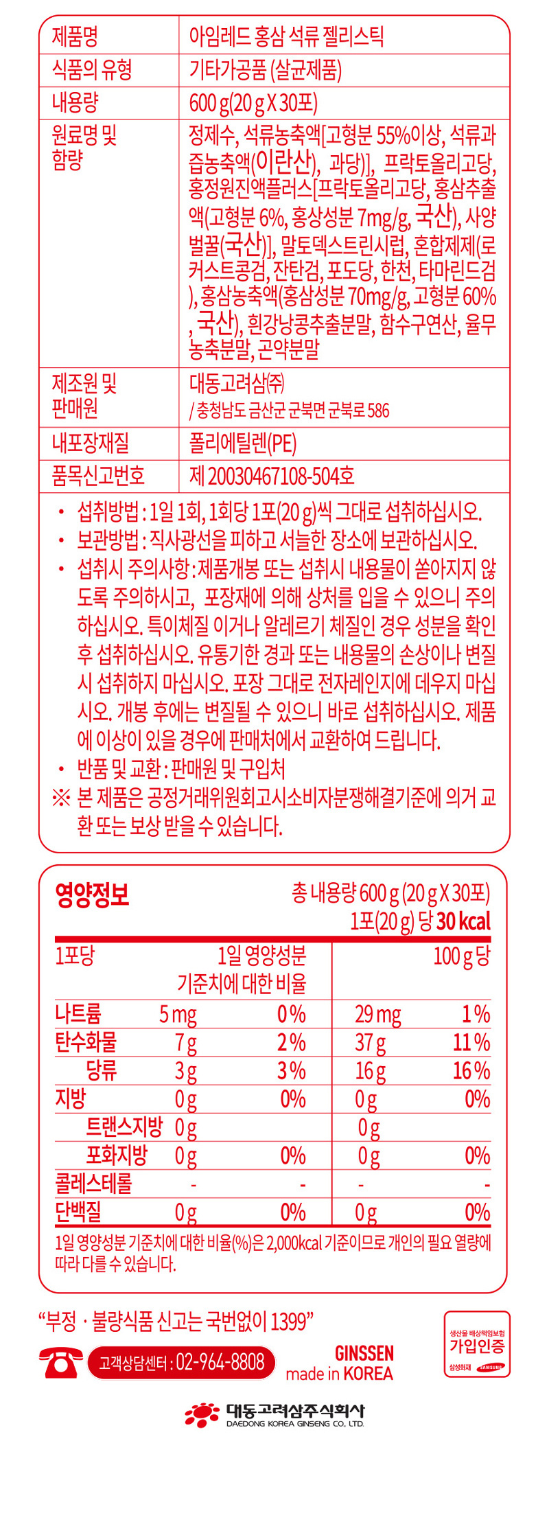 | 제품명 | 홍삼석류 아임레드 젤리 스틱(20g x 30포) |