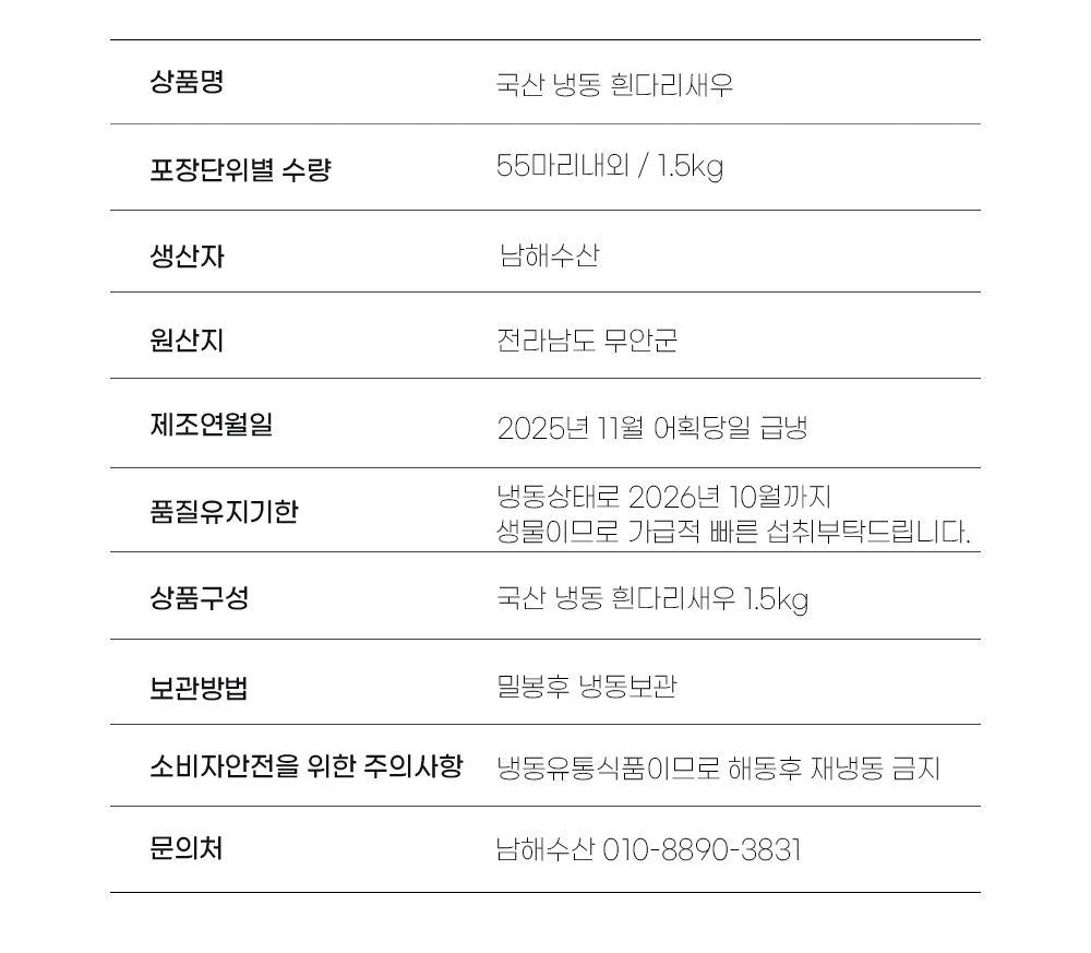 | 품목 또는 명칭 | 국산 냉동 왕새우 |