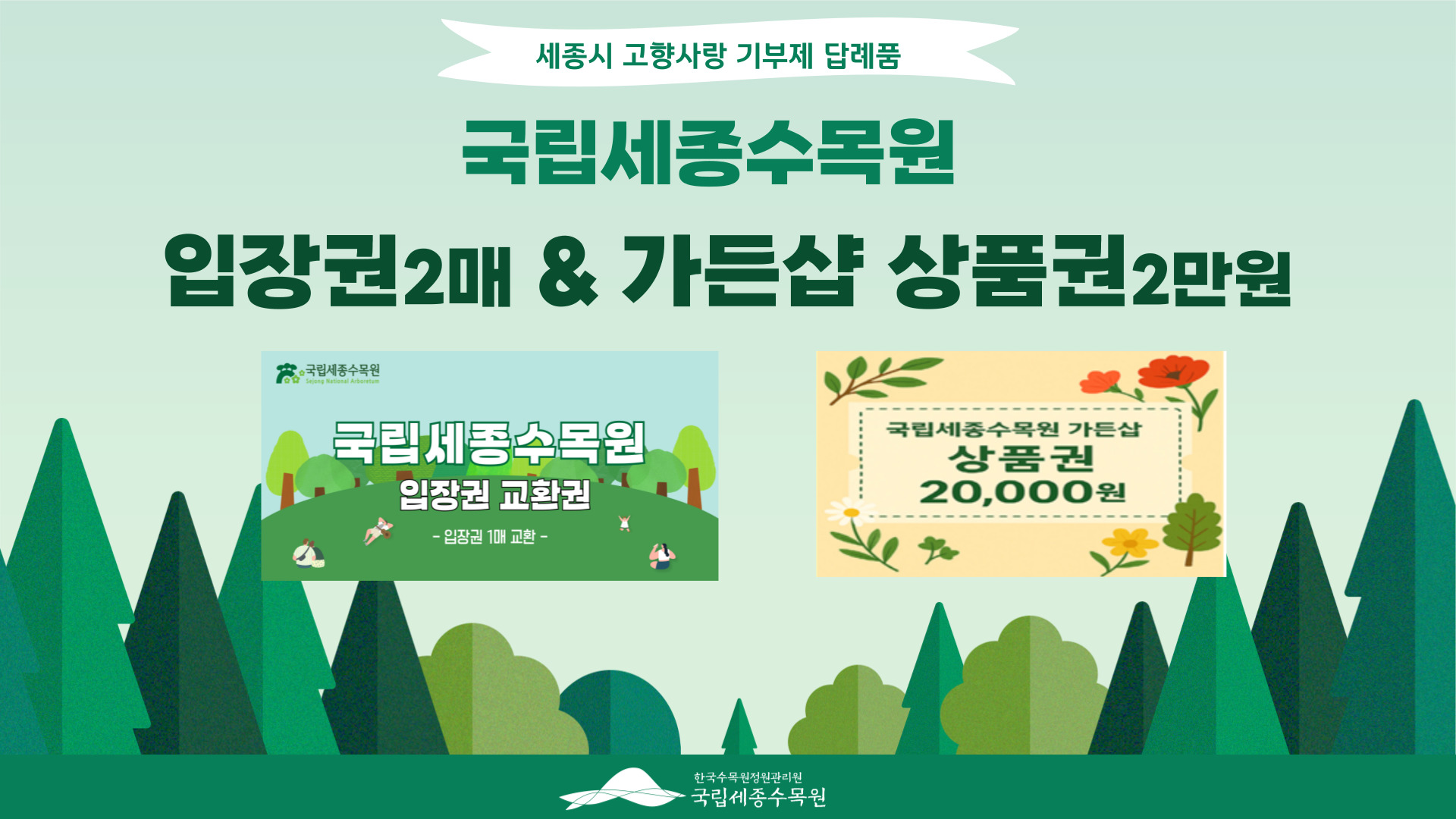 국립세종수목원 입장권 2매+가든샵 상품권 2만원 고향사랑기부제, 10만원까지 전액 세액공제 무료 답례품! 직장인은 안 하면 바보!