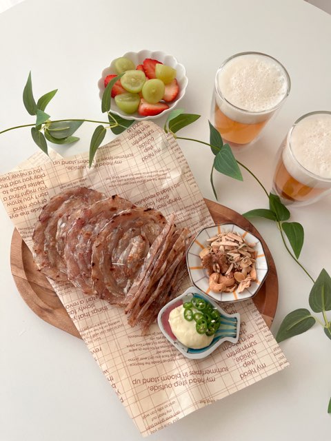 건조오징어보다 수분함량이 높아 부드럽고 쫄깃한 오징어입니다.