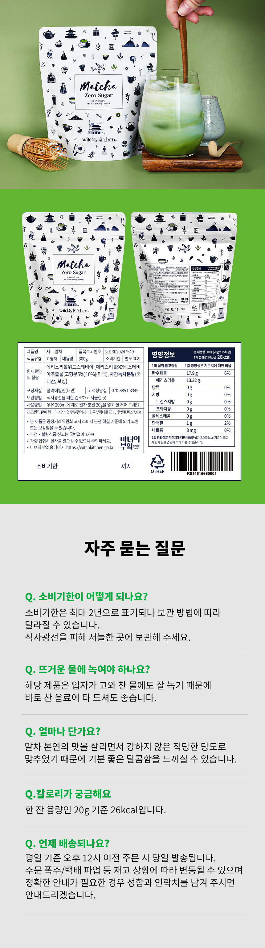 [마녀의부엌] 제로슈가말차 분말 300g