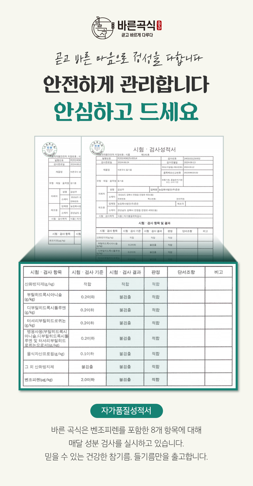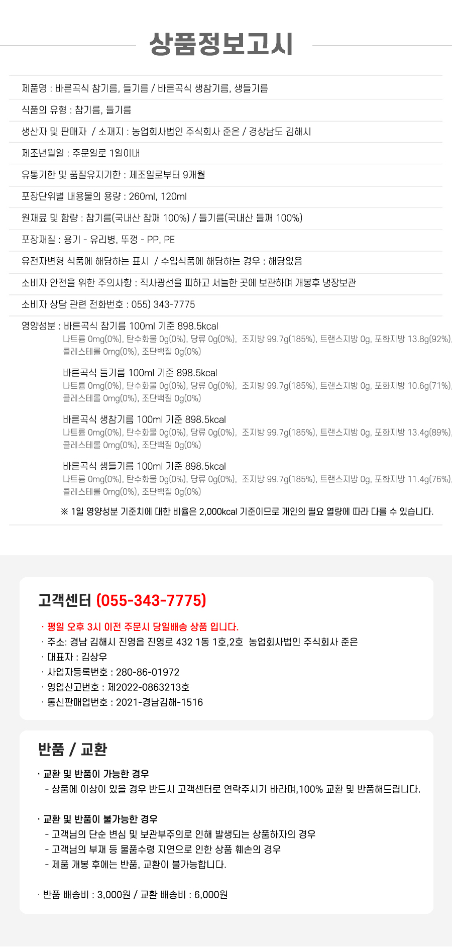 | 원재료명 및 함량 | 국내산 참깨 100% |