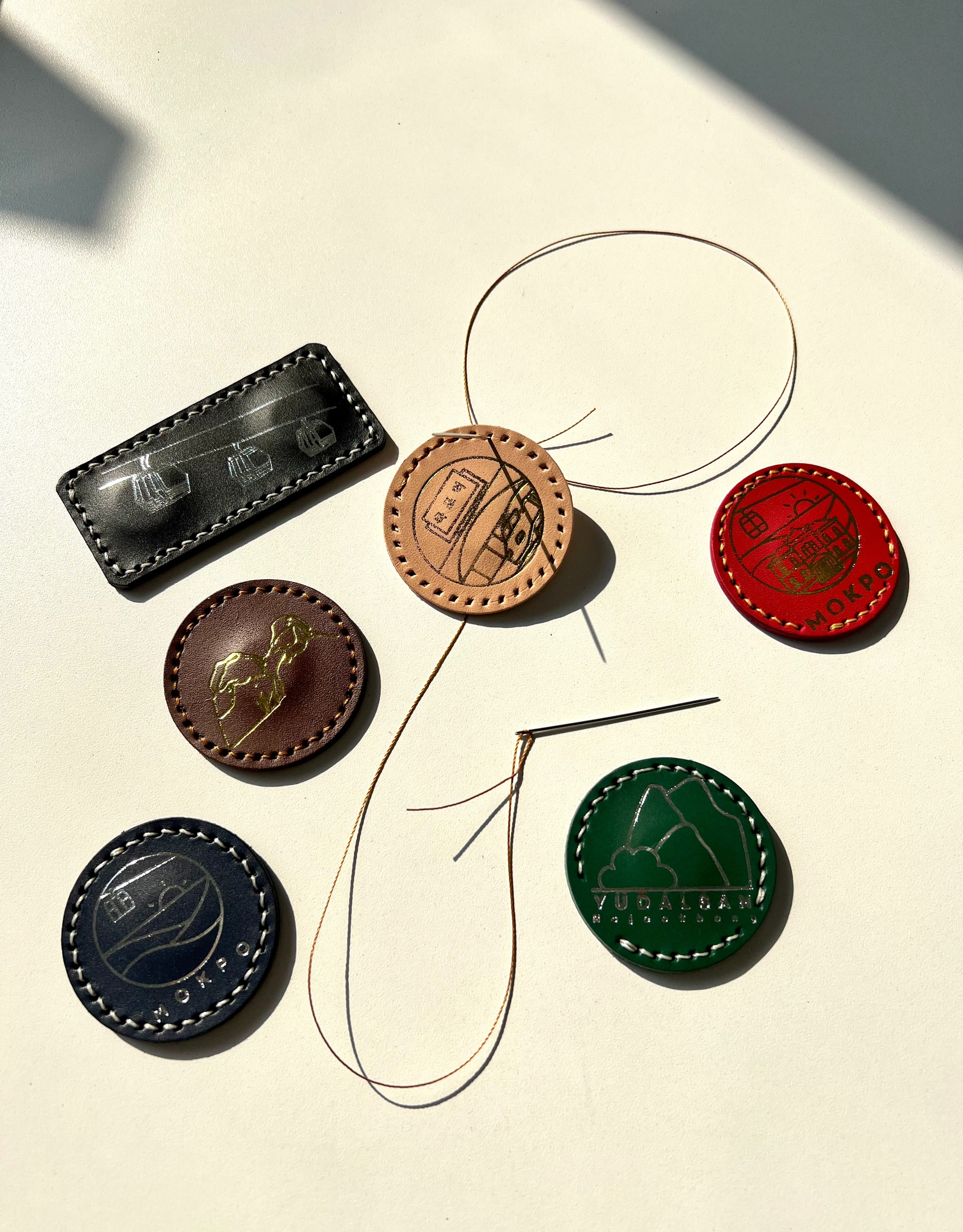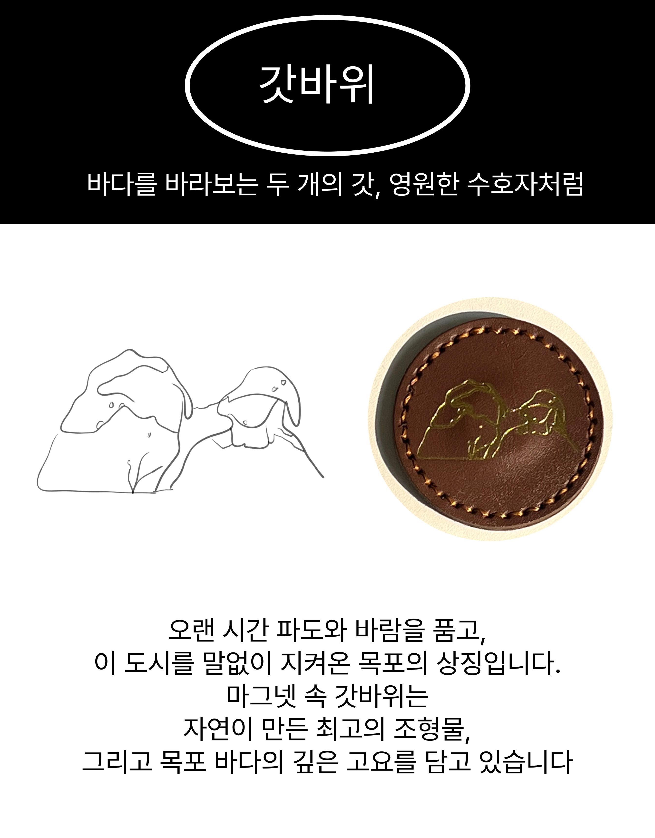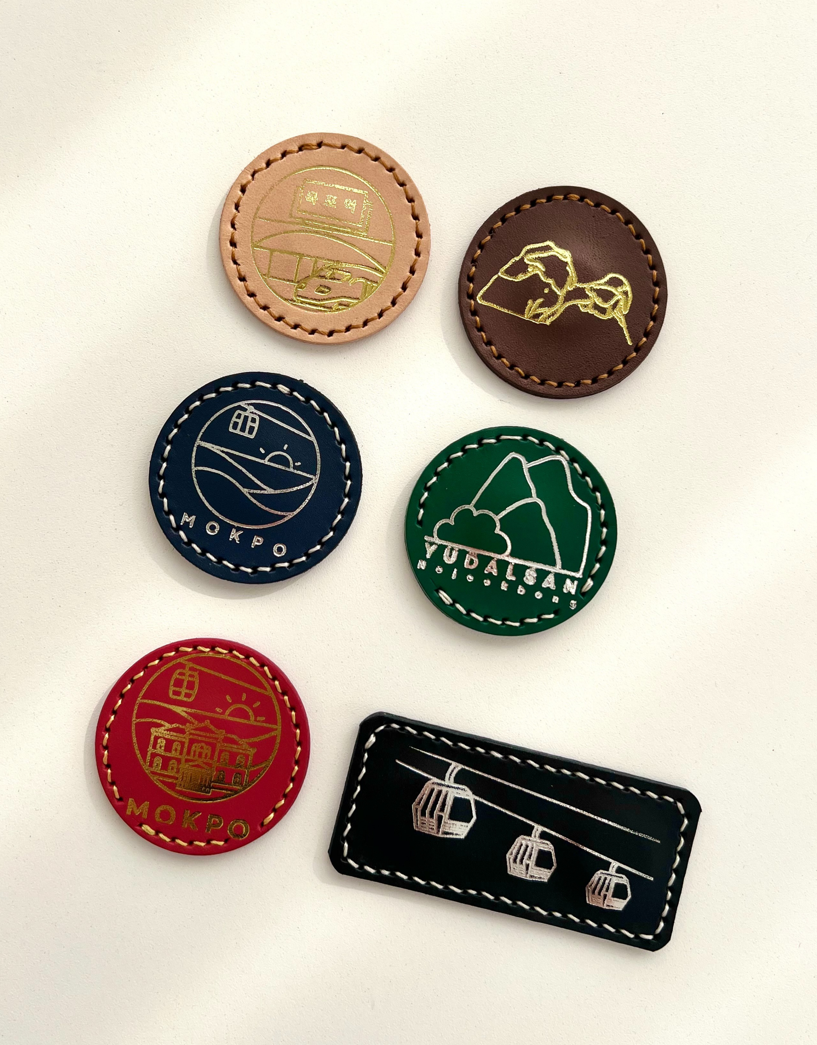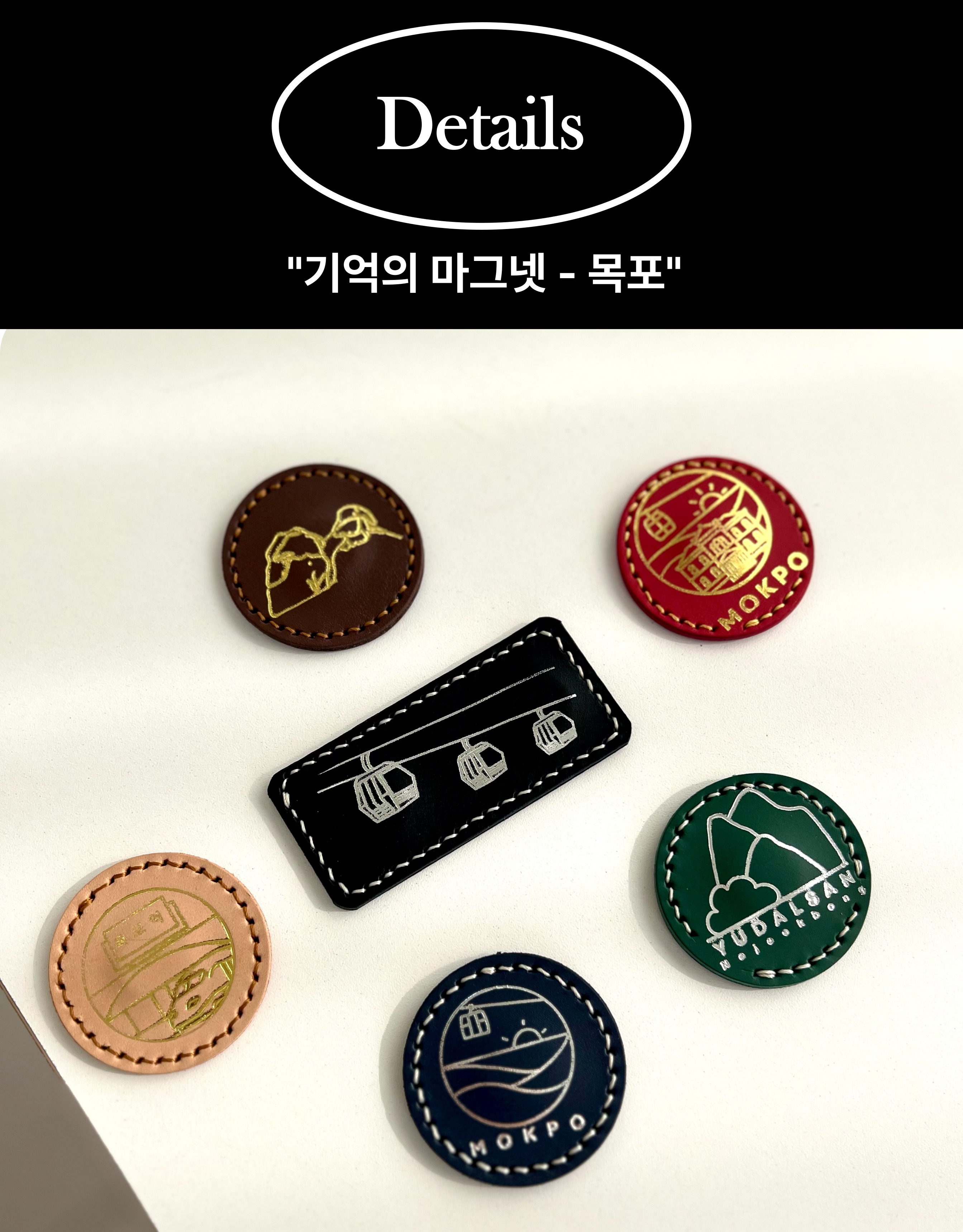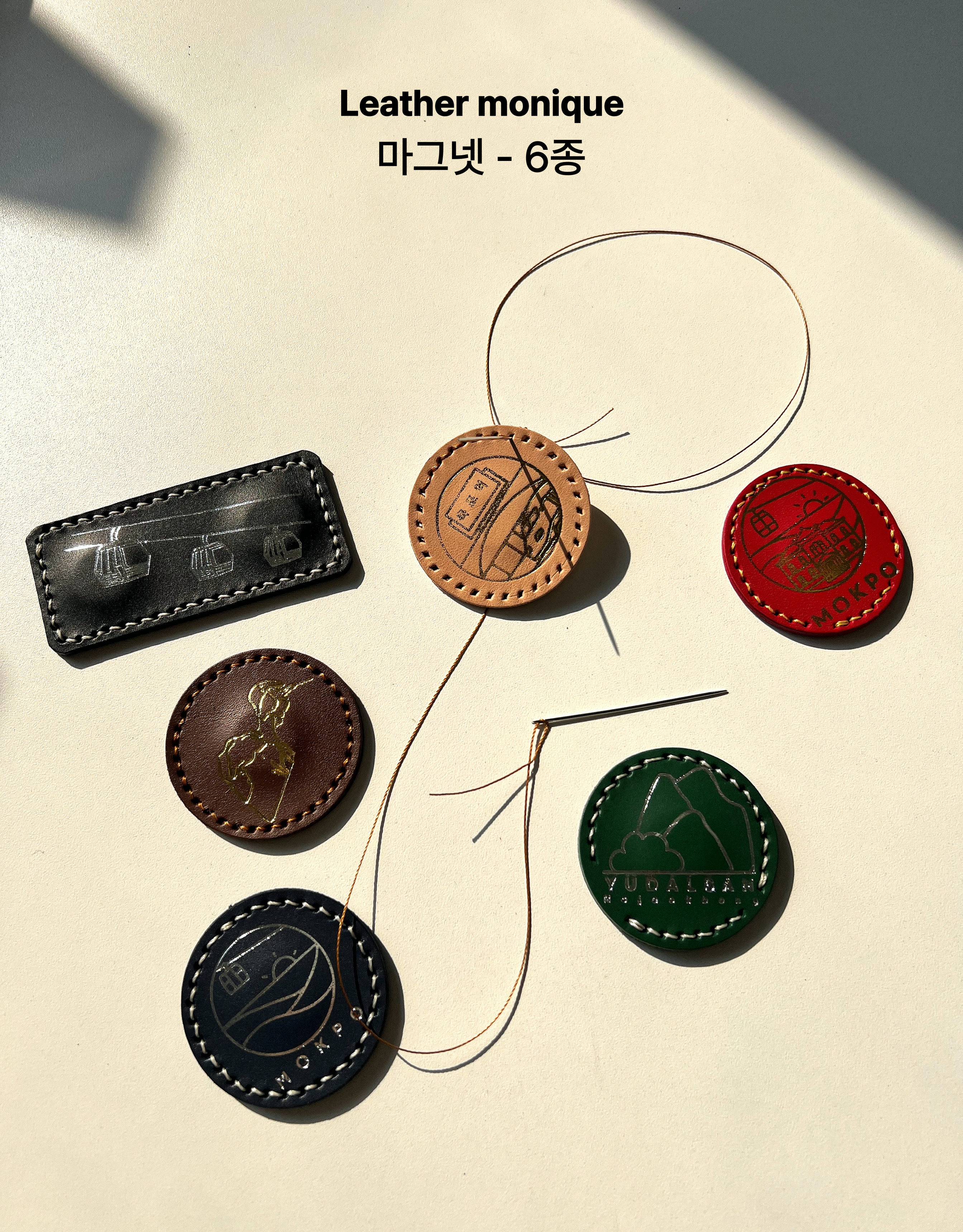 목포를 담은 가죽 마그넷 6종 세트(원형 지름 34mm*5개+사각 75*35mm*1개)