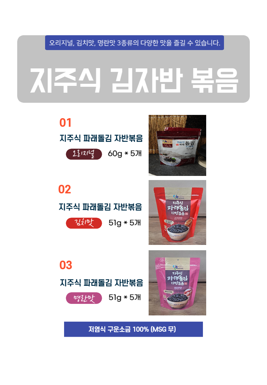 지주식 김자반볶음 540g(오리지널 60g*5개+김치 51g*5개+명란 51g*5개)