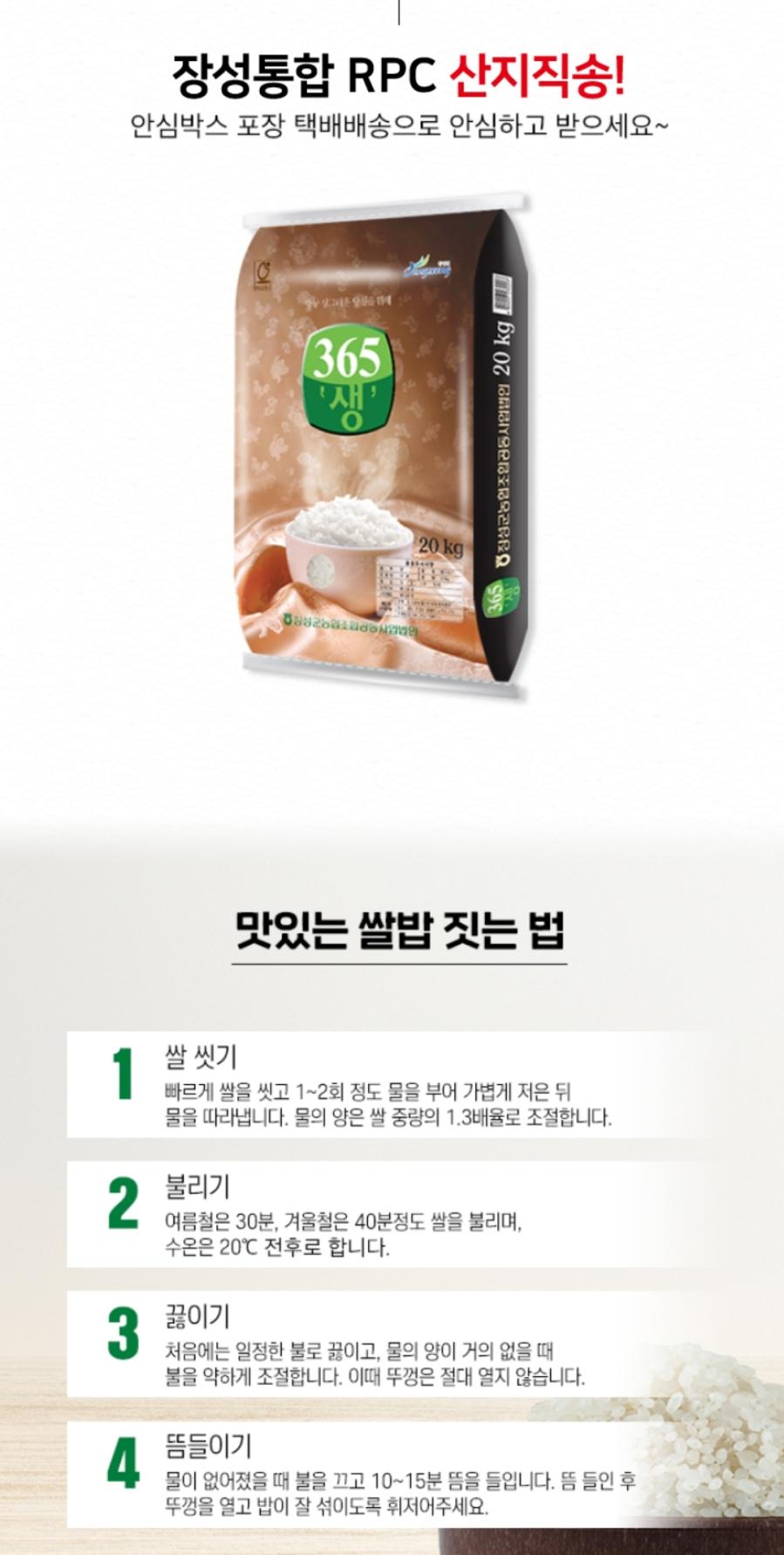 장성농협 산지직송 365생 쌀 10kg(3kg*3포+500g*2포)