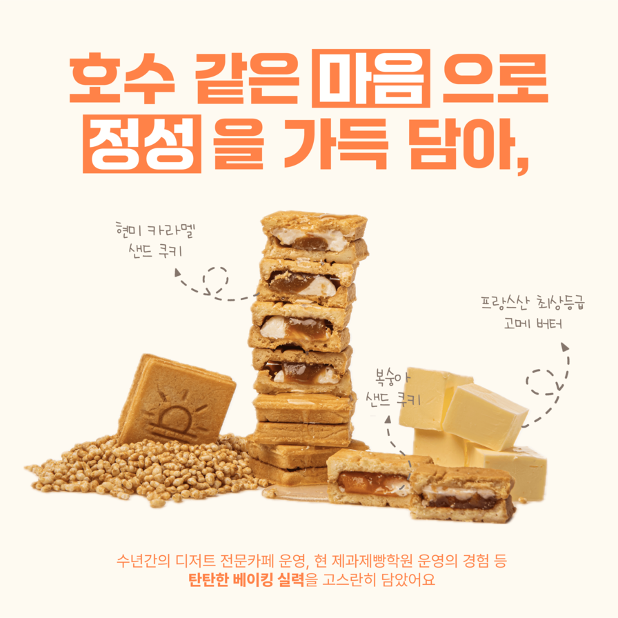 세종호수샌드는 매주 월,화,수,목오후 2시 전 주문건에 한 해순차적으로 당일출고됩니다.이 점 참고하여 주문 해주시길 바랍니다. 아래 두가지 맛은 옵션 선택사항으로 현미카라멜(6구), 아몬드 초코(6구) 중 1가지 맛을 선택해 주시길 바랍니다 ^^ 패키지 구성은 박스, 안내카드, 쇼핑백과 함께 아래 사진의 예쁜 보자기로 포장해서 보내드립니다 ^^