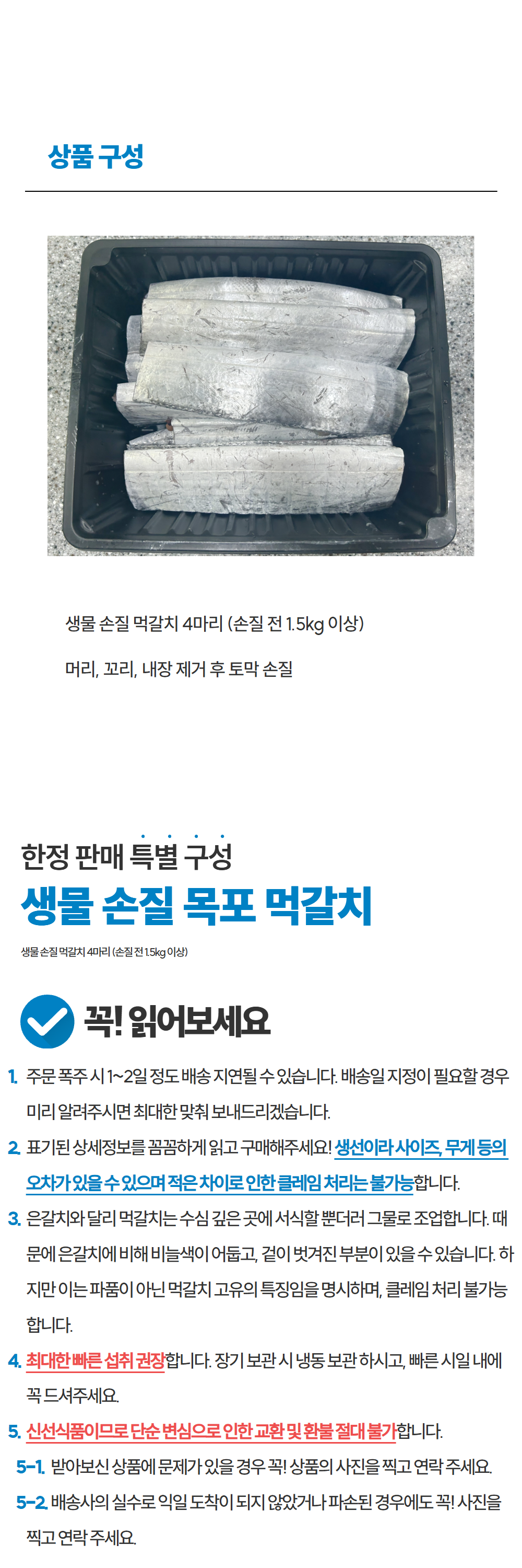 [이벤트] 손질 목포 먹갈치 4마리+삼채고등어 1미