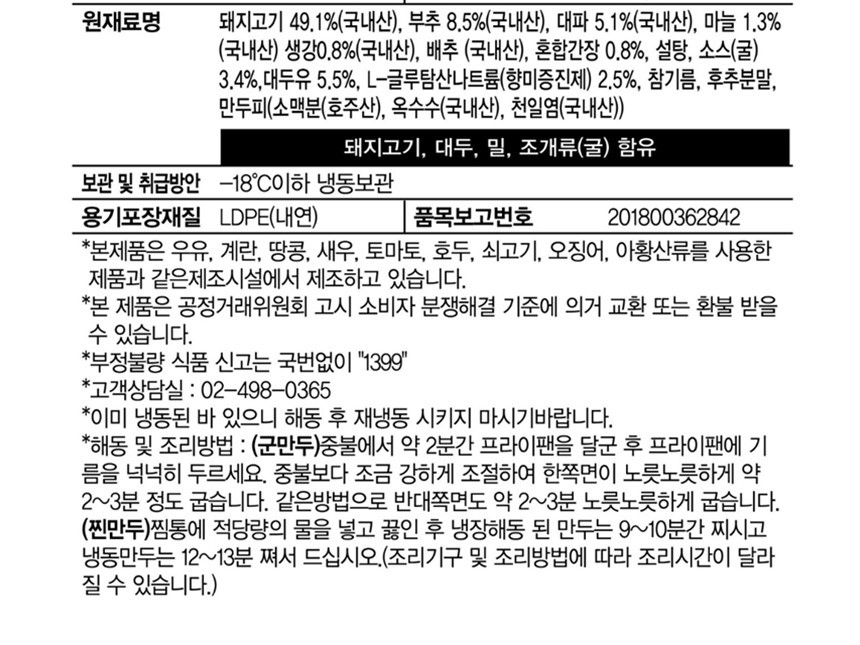 | 소비자상담 관련 전화번호 | 02-498-0365 |