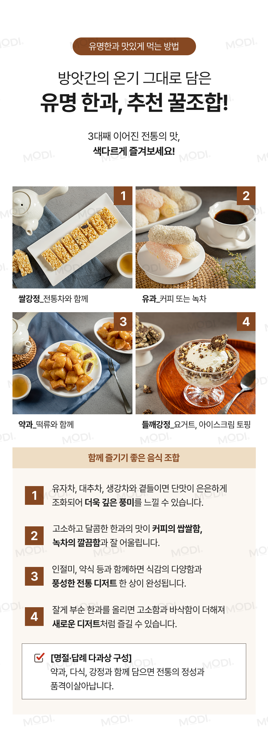 | 포장단위별 내용물의 용량(중량), 수량 | 유과 150g, 쌀강정250g,들깨강정300g,약과600g |