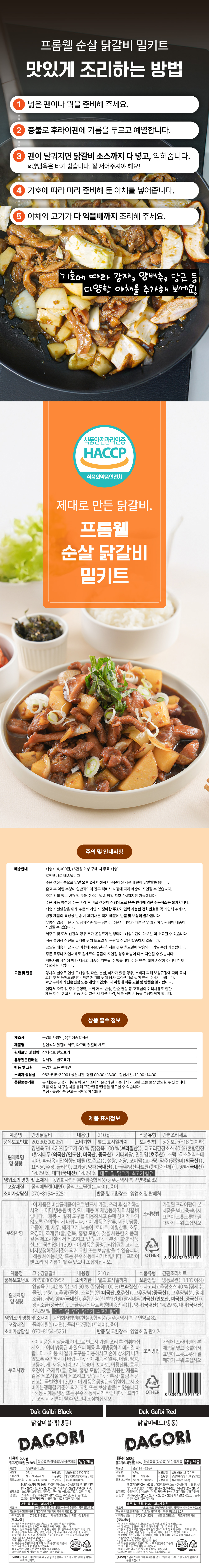 다고리 닭갈비 블랙(간장맛) 500g*2팩+ 다고리 닭갈비 레드(고추장맛) 500g*1팩