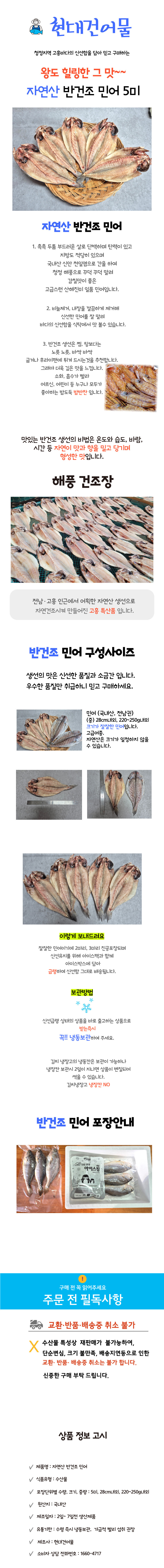 | 포장단위별 내용물의 용량(중량), 수량, 크기 | 민어 5마리 |