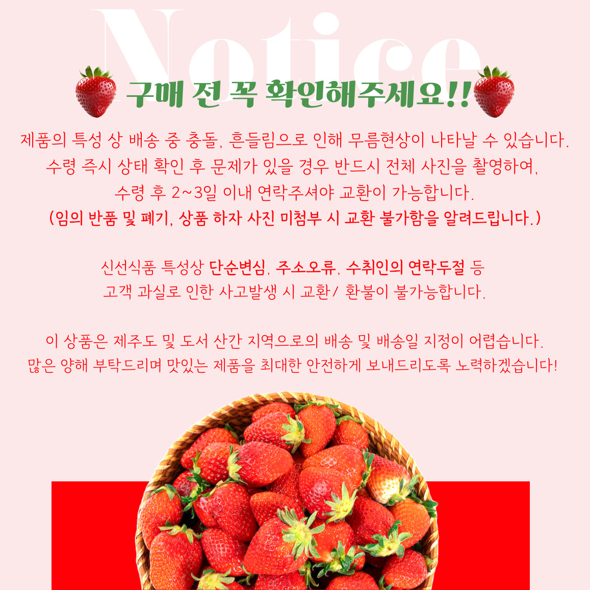 딸기는 당일 수확량, 기상 여건, 배송 물량 등에 따라