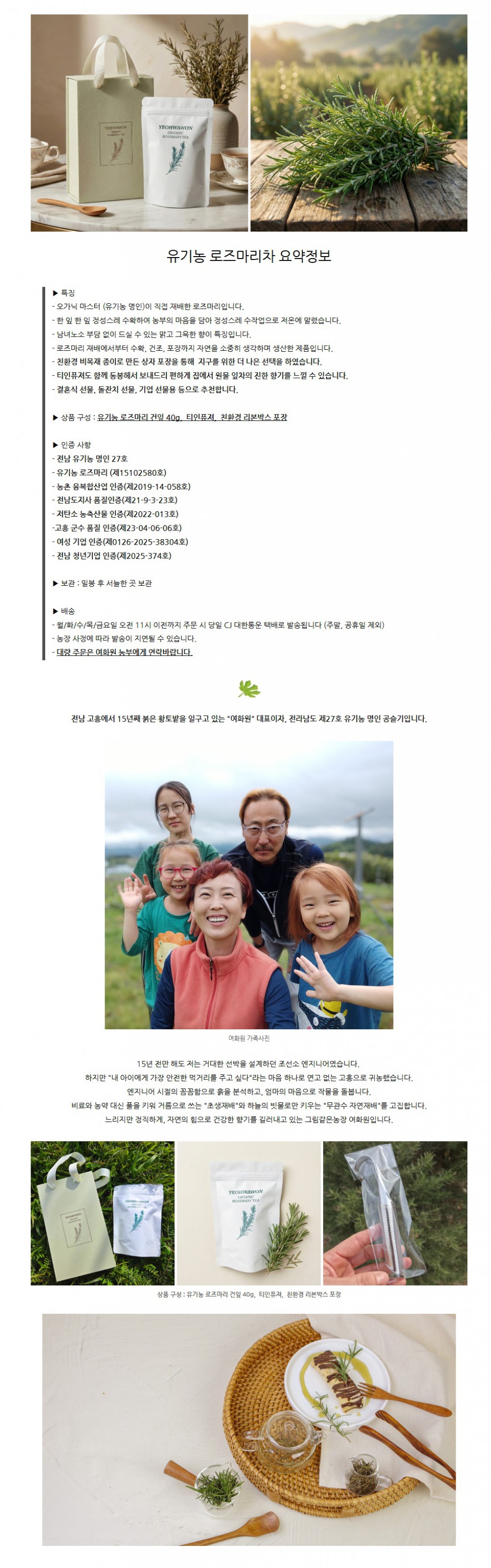 유기농 로즈마리 잎차 선물세트(로즈마리 건잎 40g+티인퓨져)