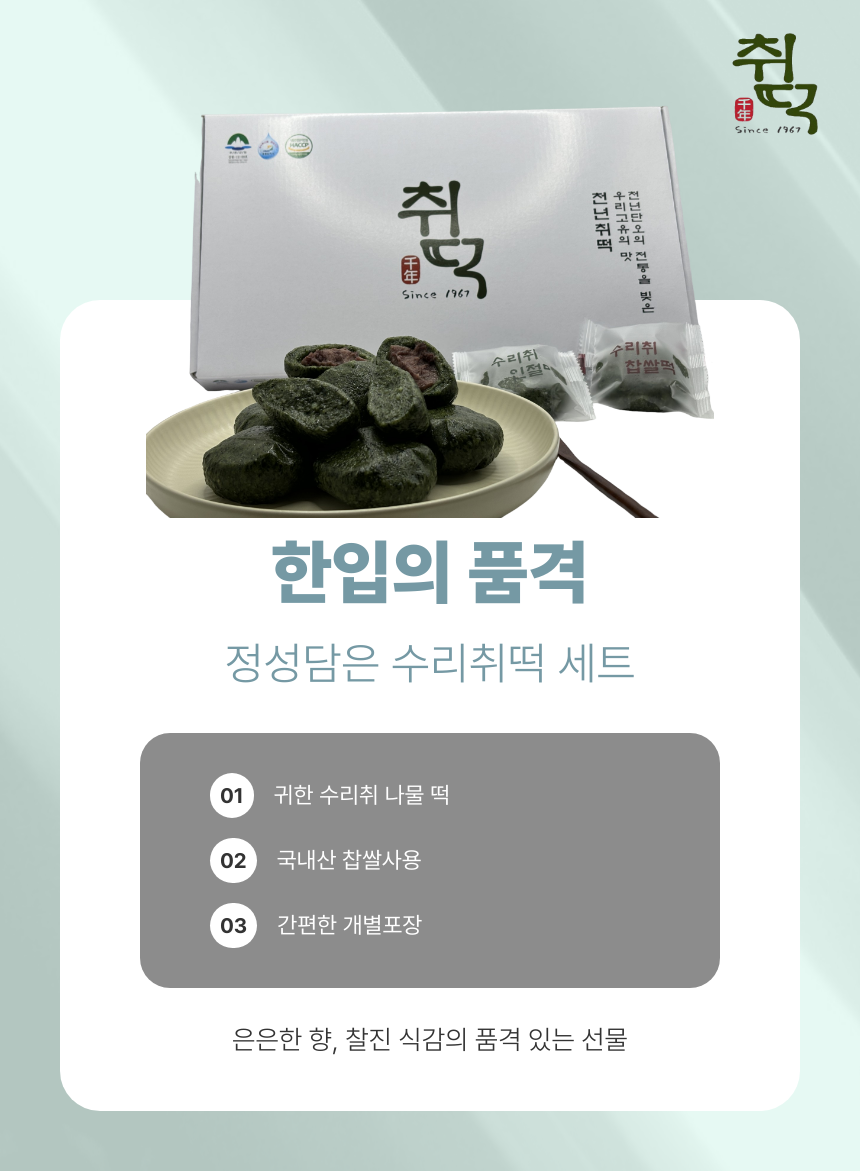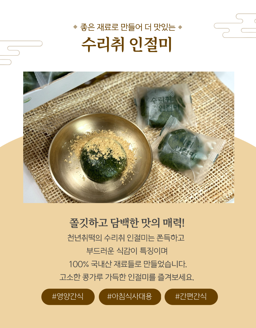 100% 국내산 수리취 인절미 1.5kg(50g*30개)