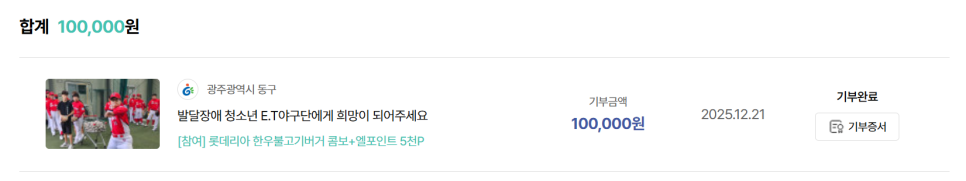 제가 선택한 곳은 광주광역시 동구의 발달장애 청소년 E.T 야구단을 지원하는 기부처였어요.
