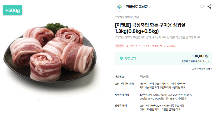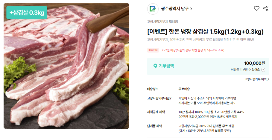 3️⃣ 고향사랑기부제 활용하면 삼겹살도 답례품으로 가능 — 기부 + 혜택 + 지역상생 구조