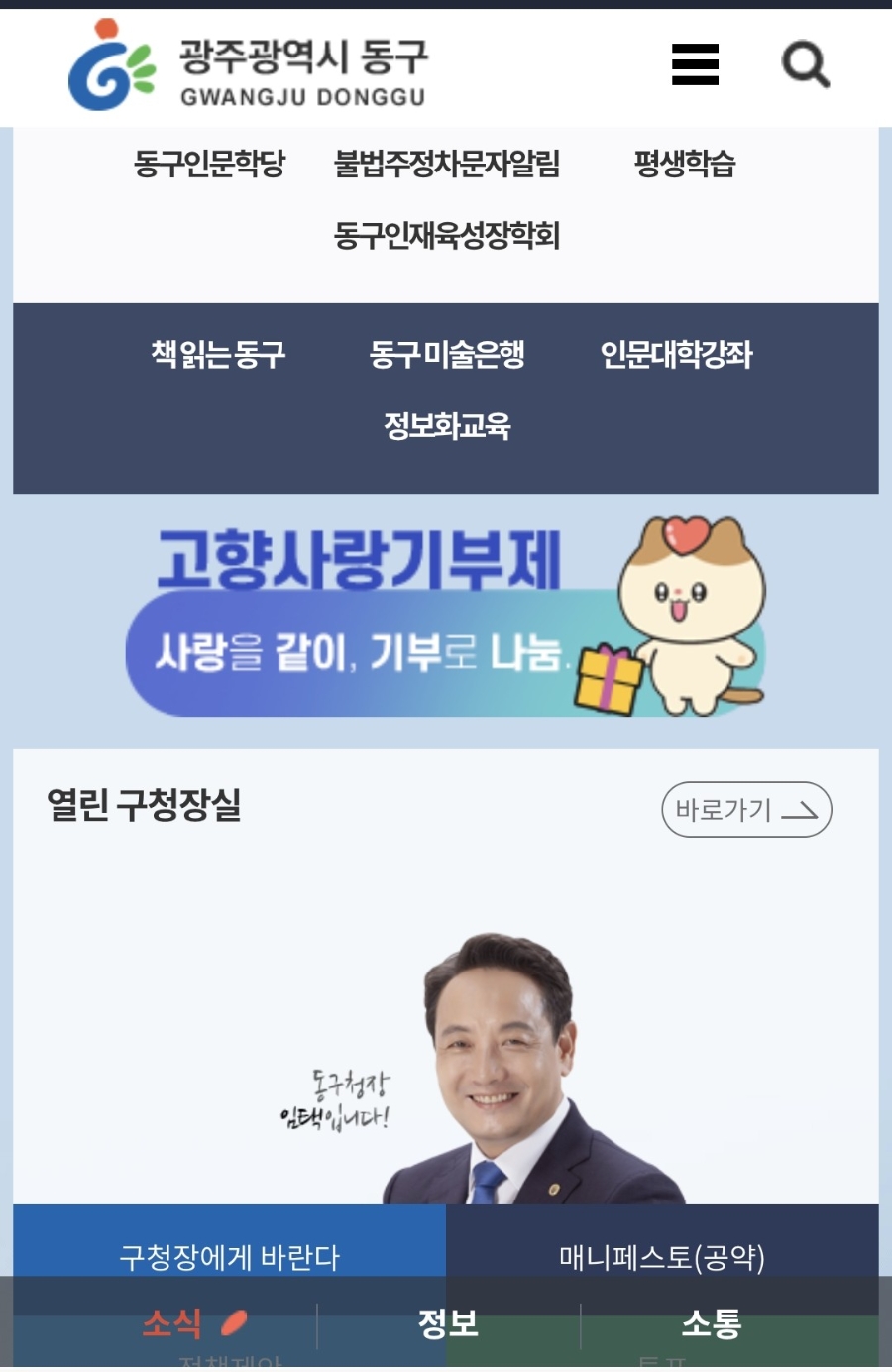 올해는 광주광역시 동구 고향사랑기부제에 참여했습니다.