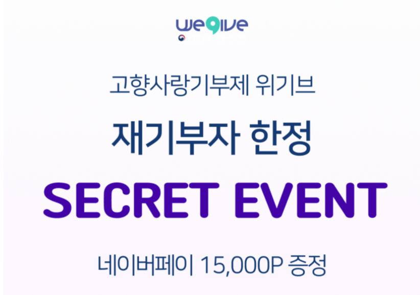 저는 주로 연말에 고향사랑 기부제 기부를 진행을 했었는데, 설날 이벤트로 고향사랑 기부제 재기부를 진행하면 네이버 포인트 15,000를 제공한다는 이벤트 문자를 보고 기부를 바로 진행하게 되었습니다.(물론 재기부이지만, 다른 지자체에 기부 가능하며 답례품도 다른 상품을 선택할 수 있었습니다)