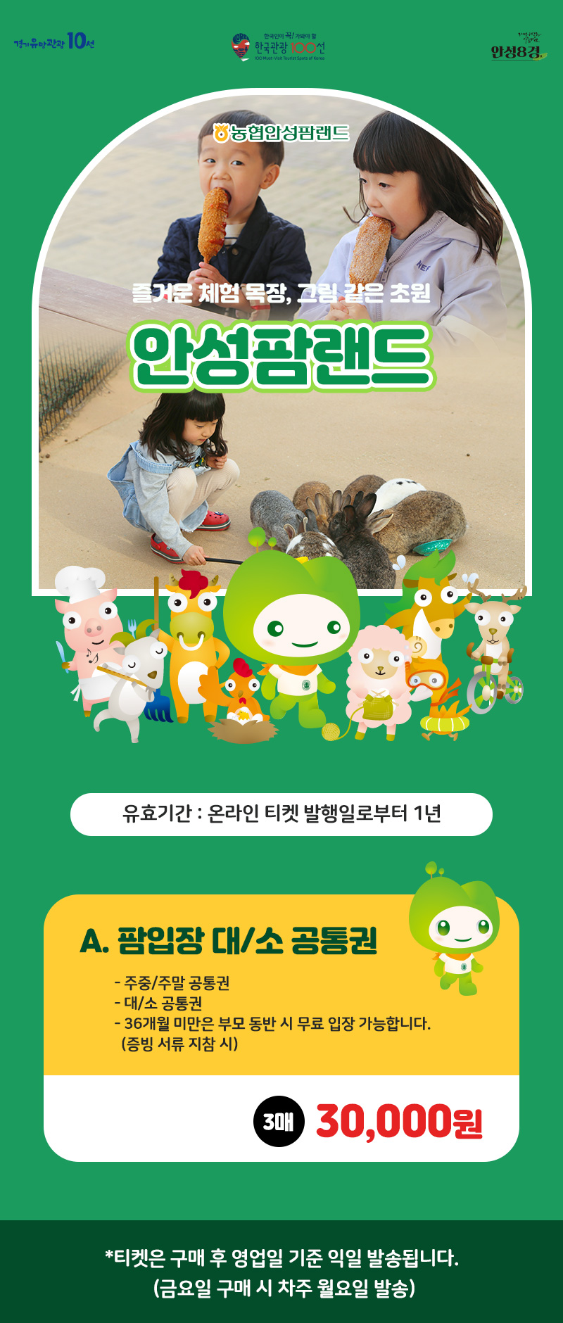 안성팜랜드 입장권 3인 3만원권 고향사랑기부제, 10만원까지 전액 세액공제 무료 답례품! 직장인은 안 하면 바보!