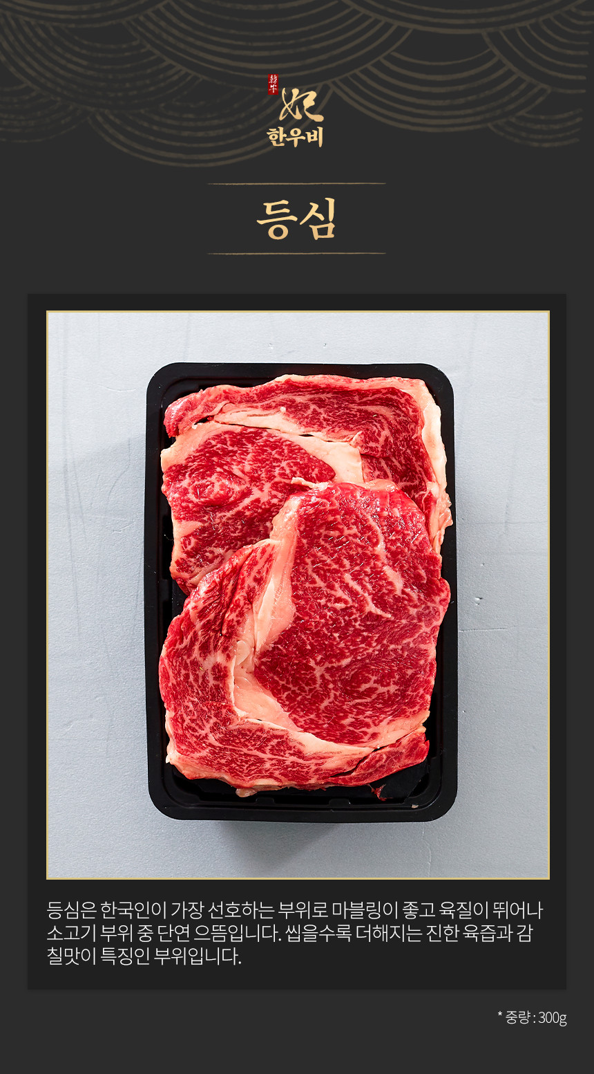 | 품목 또는 명칭 | 한우비 프리미엄 1등급 한우암소 등심구이용 300g |
