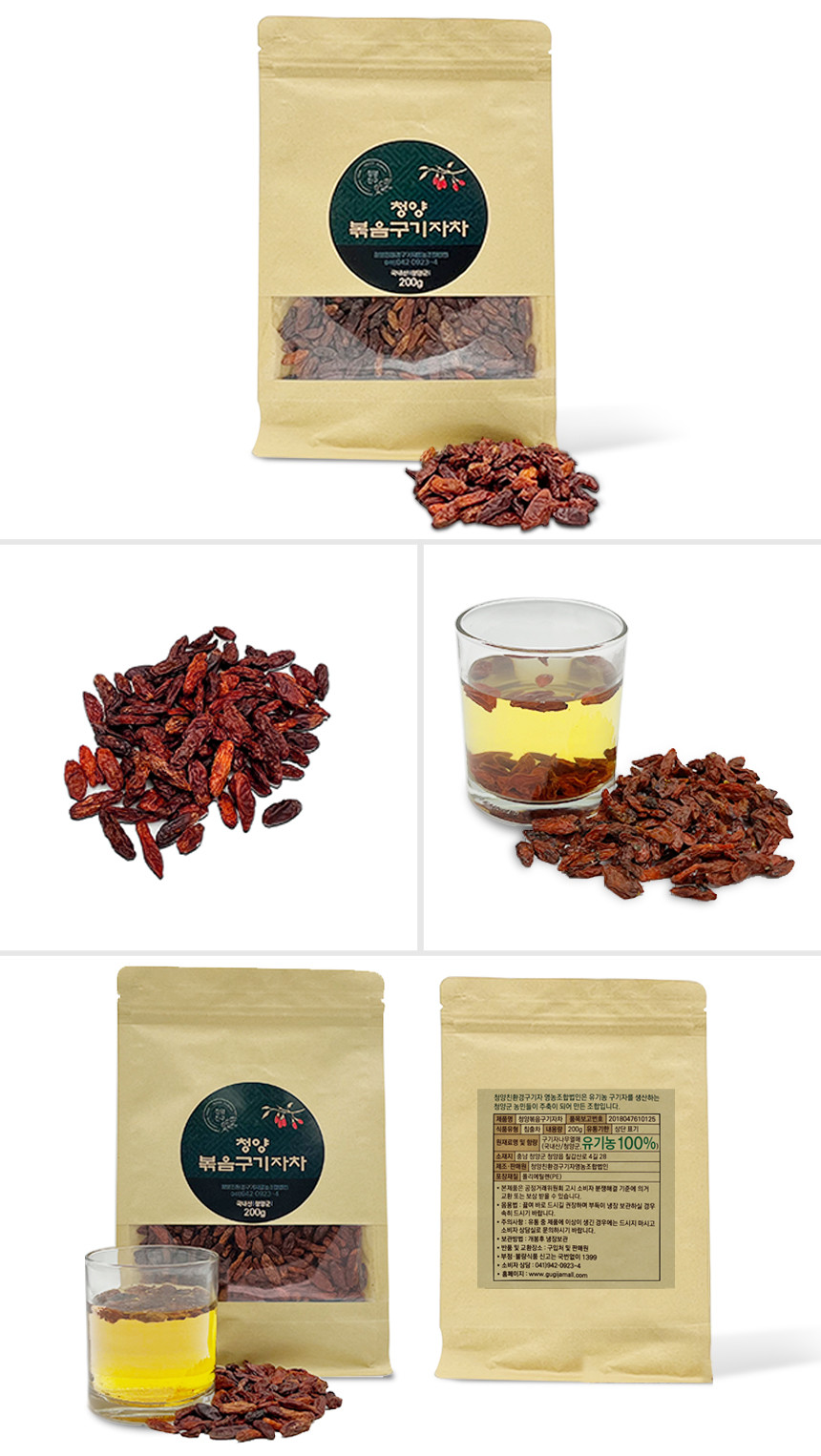 | 원재료명 (「농수산물의 원산지 표시 등에 관한 법률」에 따른 원산지 표시 포함) 및 함량(원재료 함량 표시대상 식품에 한함) | 청양유기농구기자열매 100% |
