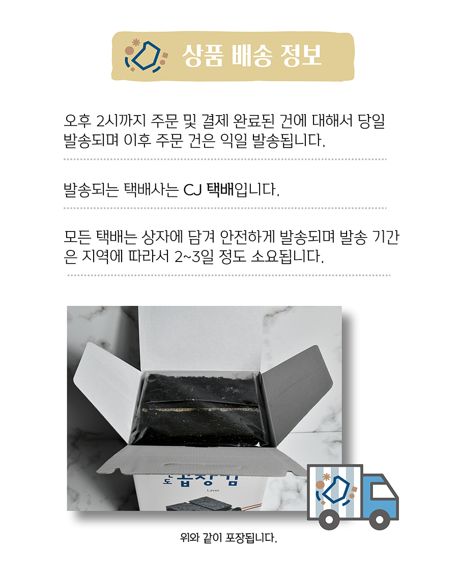 자라나는 모든 해산물 및 김들은 항상 전국 최고의 품질을 자랑하고 있습니다.