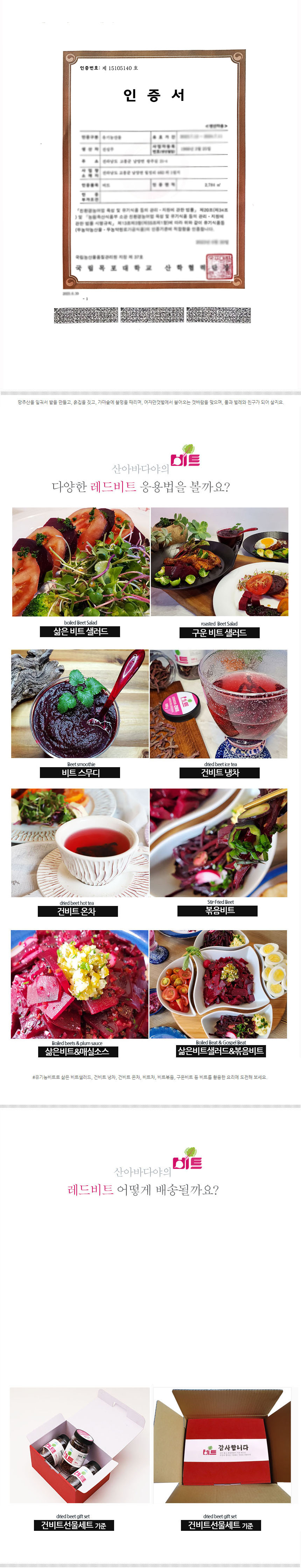 | 품목 또는 명칭 | 국내산 유기농 건비트 선물세트 혈관청소 100g x 3 |