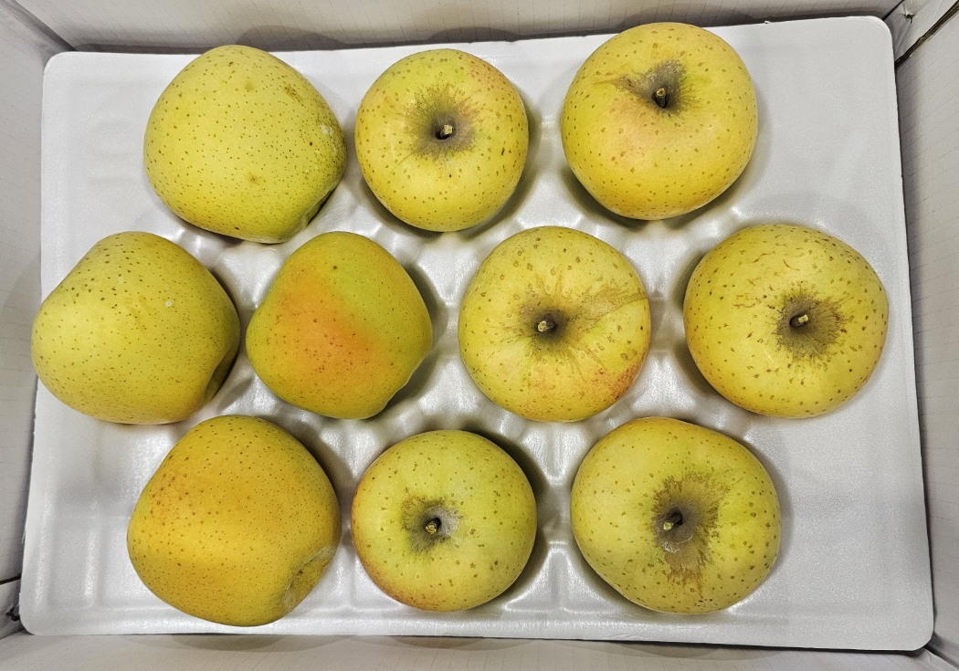 시나노골드 : 황금색 사과로 새콤한맛이 60%, 달콤한맛이 40% 정도로 과육이 단단한 사과