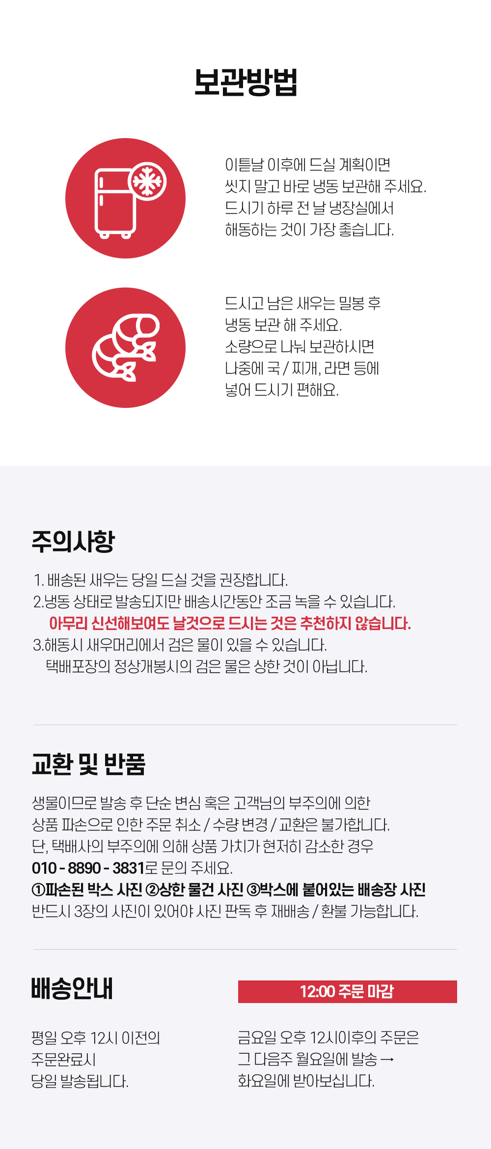 | 보관방법 또는 취급방법 | 수령즉시냉동보관 |