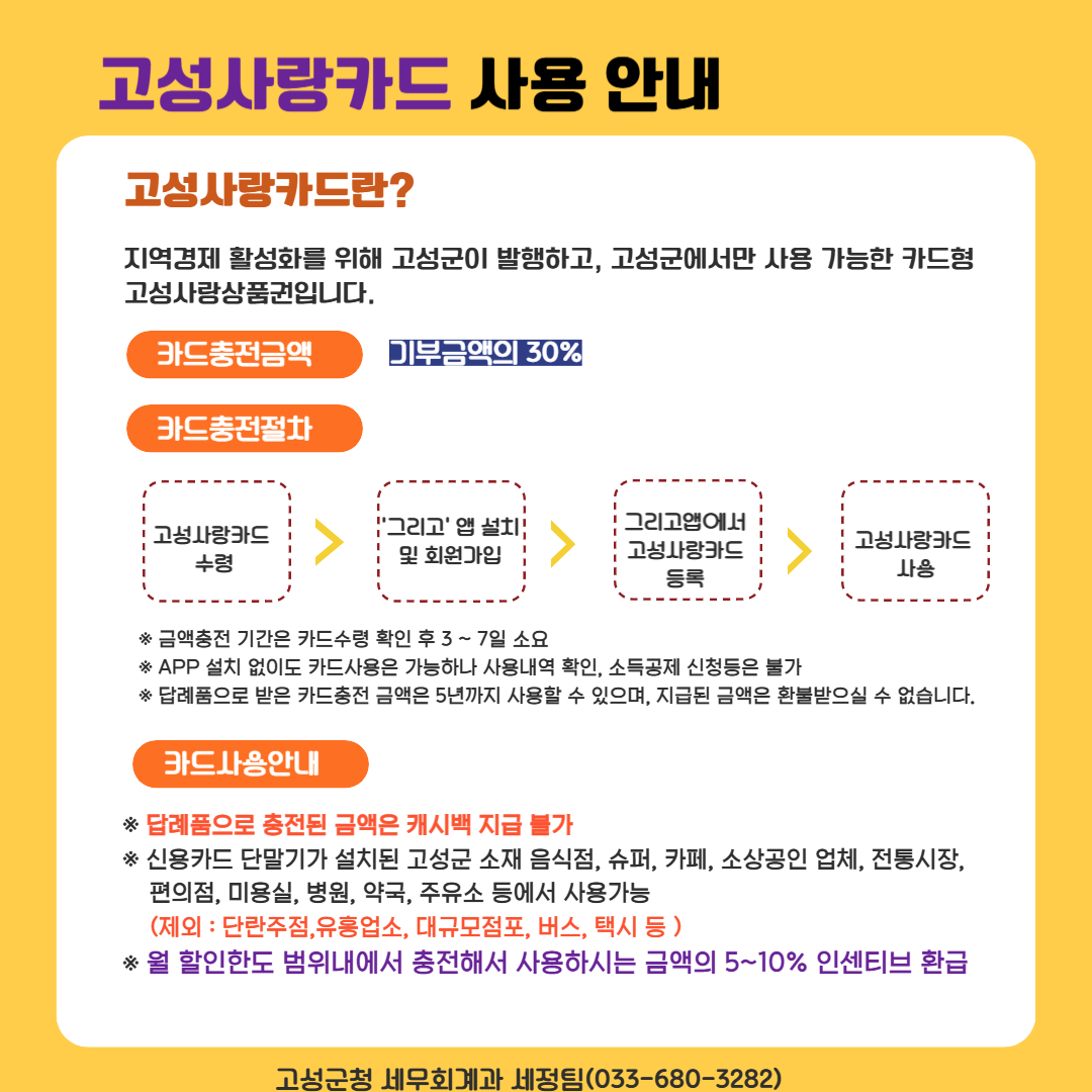 | 이용 가능 매장 | 고성군 관내 그리고카드 사용이 가능한 가맹점 |
