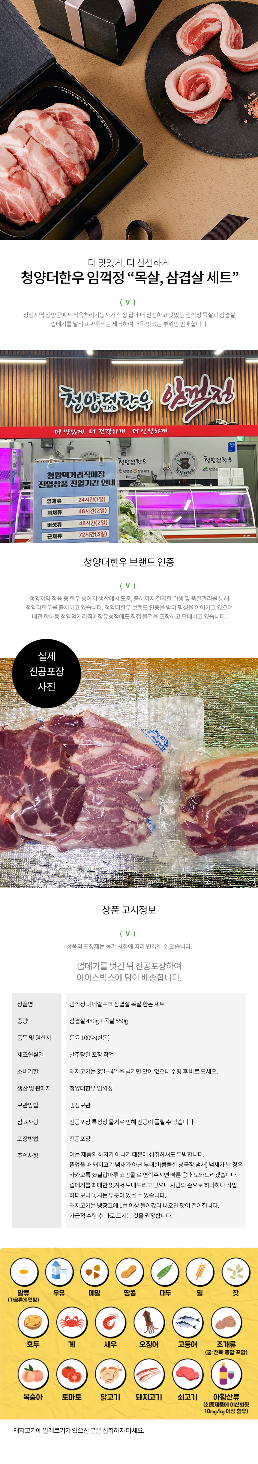 청양더한우 임꺽정 한돈 삼겹살 목살 세트 1030g(삼겹살 480g+목살 550g)