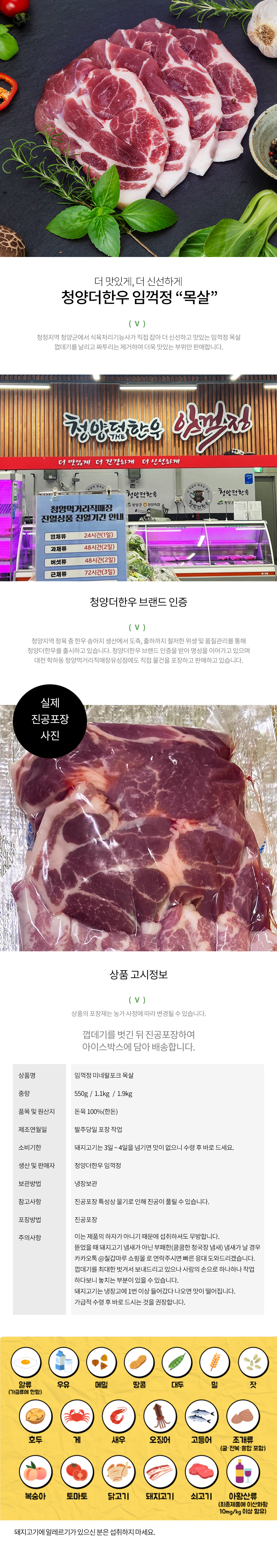 청양더한우 임꺽정 한돈 목살 1.1kg
