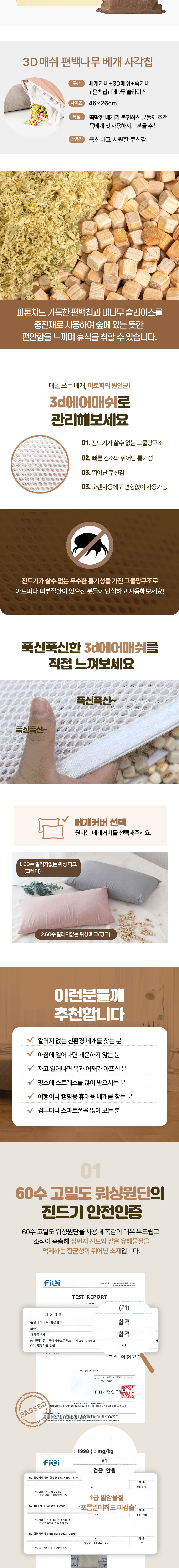 | 품명 및 모델명 | 대나무 3d편백나무베개 |