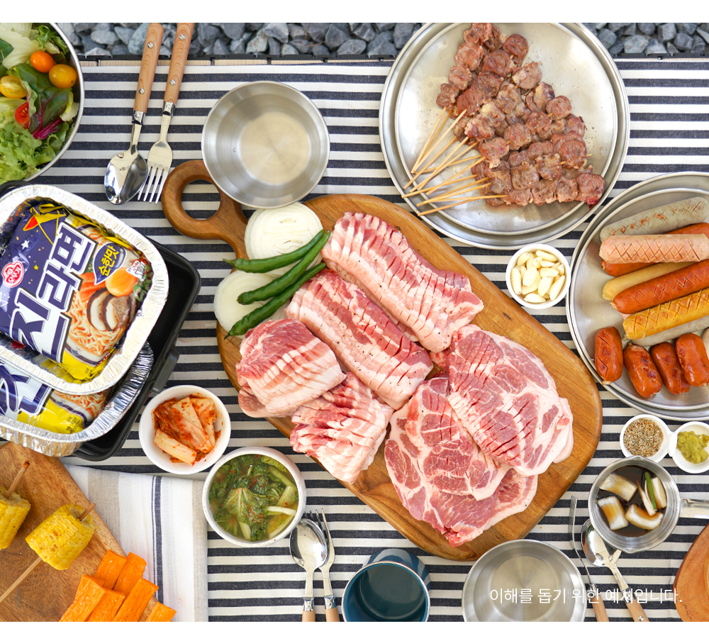 한돈캠핑세트 600g(삼겹살300g+목살300g+구성품 9종)