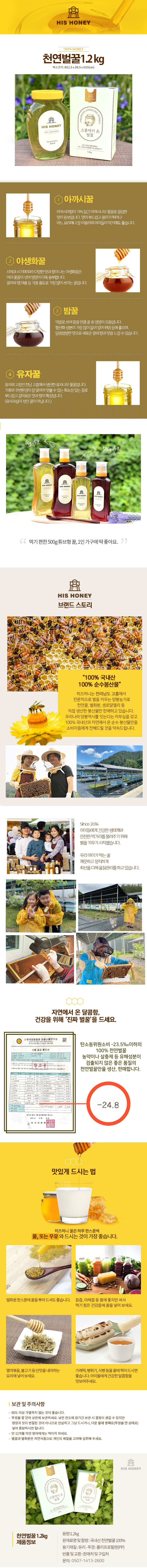 천연벌꿀 (아카시아꿀 , 야생화꿀,유자꿀,밤꿀) 1.2kg