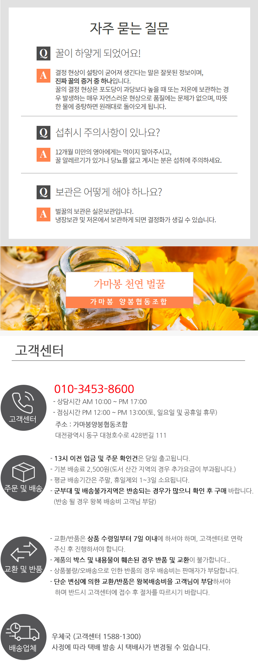 | 상품구성 | 가마봉 천연벌꿀 제1호(아까시아꿀 500g*2병+프로폴리스 치약) |