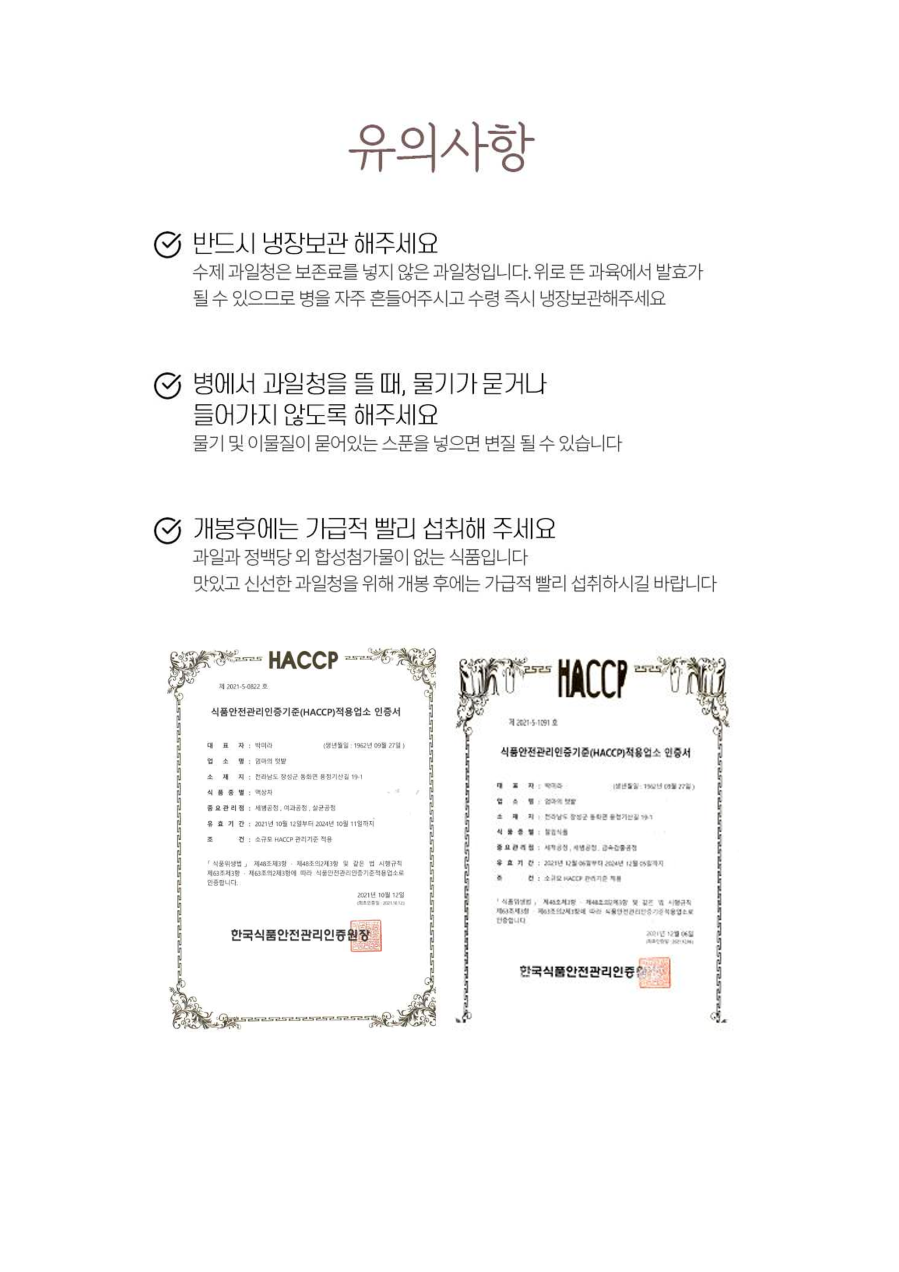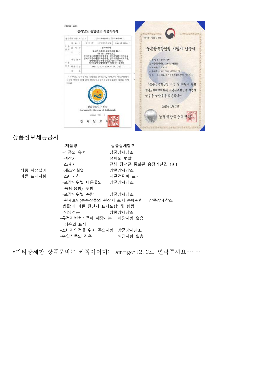 | 생산자 및 소재지 | 전남 장성군 동화면 용정기산길 19-1 |