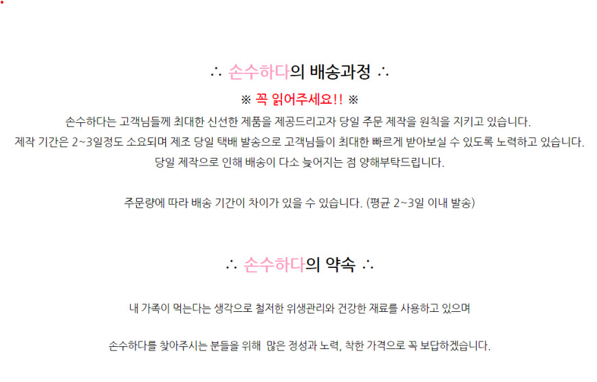 | 제조연월일, 소비기한 또는 품질유지기한 | 주문 당일 제조 |