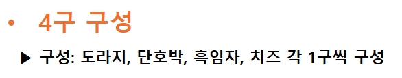 | 원재료명 및 함량 | 찹쌀,우유,베이킹파우더,설탕,계란,소금,흑임자,단호박:국내산, 호두:미국, 버터:뉴질랜드, 도라지:중국, 초코파우더:네덜란드/프랑스, 치즈파우더:인도네시아/말레이시아/필리핀 |