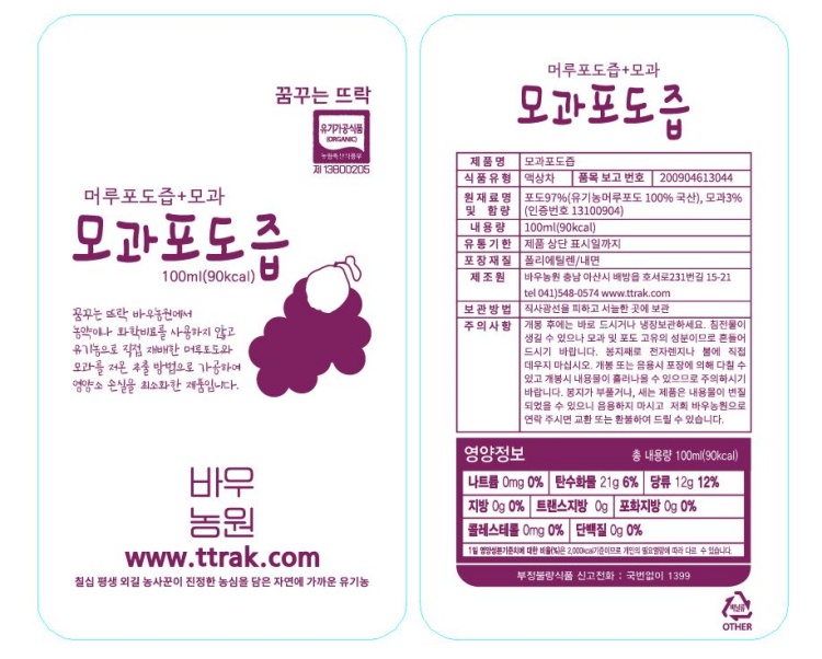 저온 착즙 유기농 모과포도즙 2L(100ml*20팩)