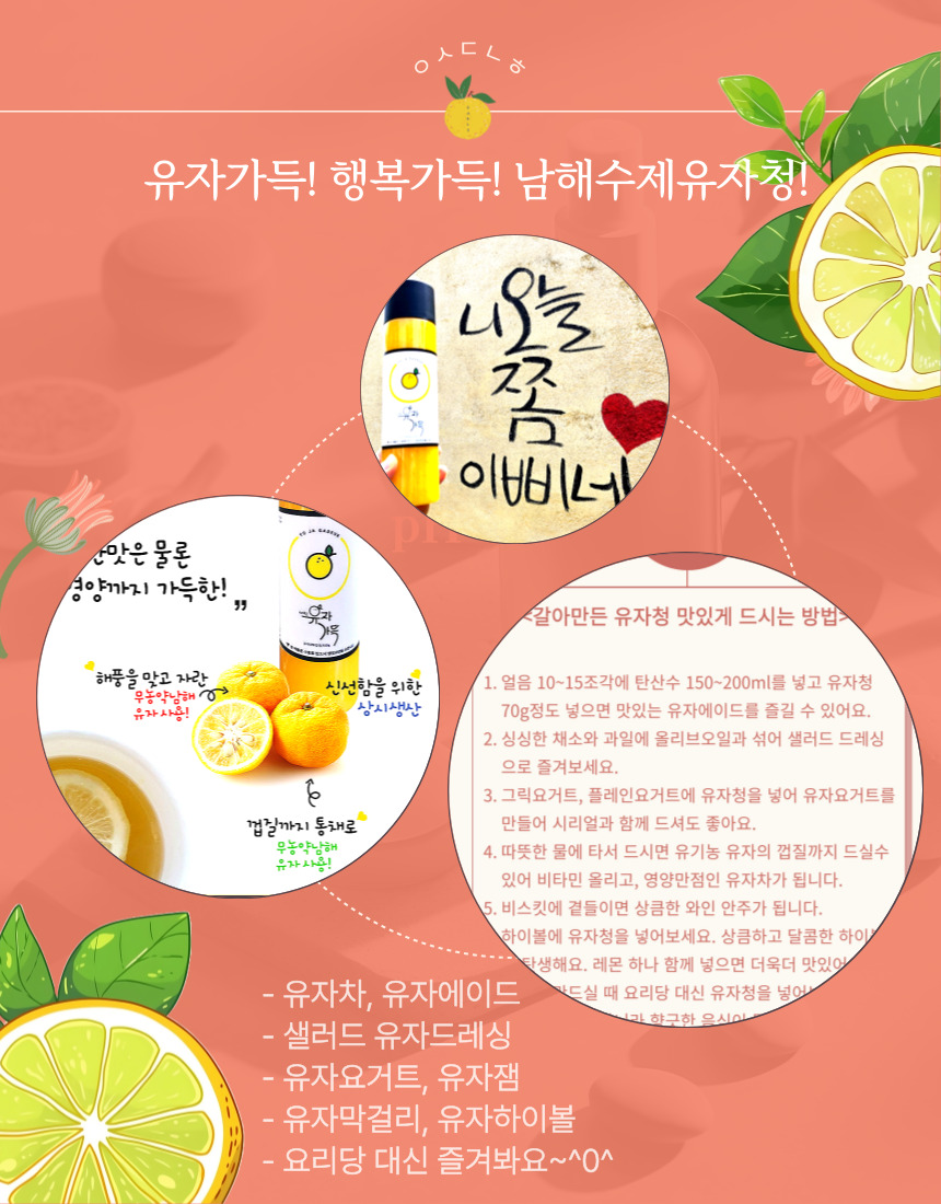 <갈아만든 남해유자청 맛있게 드시는 방법을 함께 드립니다>
