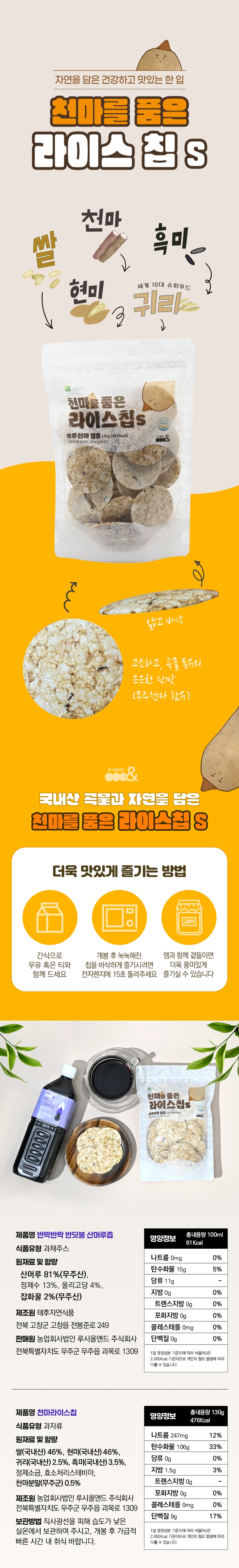 | 생산자 및 소재지 | 반딧불 산머루즙 : 태후자연식품-전북특별자치도 고창군 고창읍 전봉준로 249 / 천마라이스칩 : 농업회사법인 루시올앤드 주식회사-전북특별자치도 무주군 무주읍 괴목로 1309 |