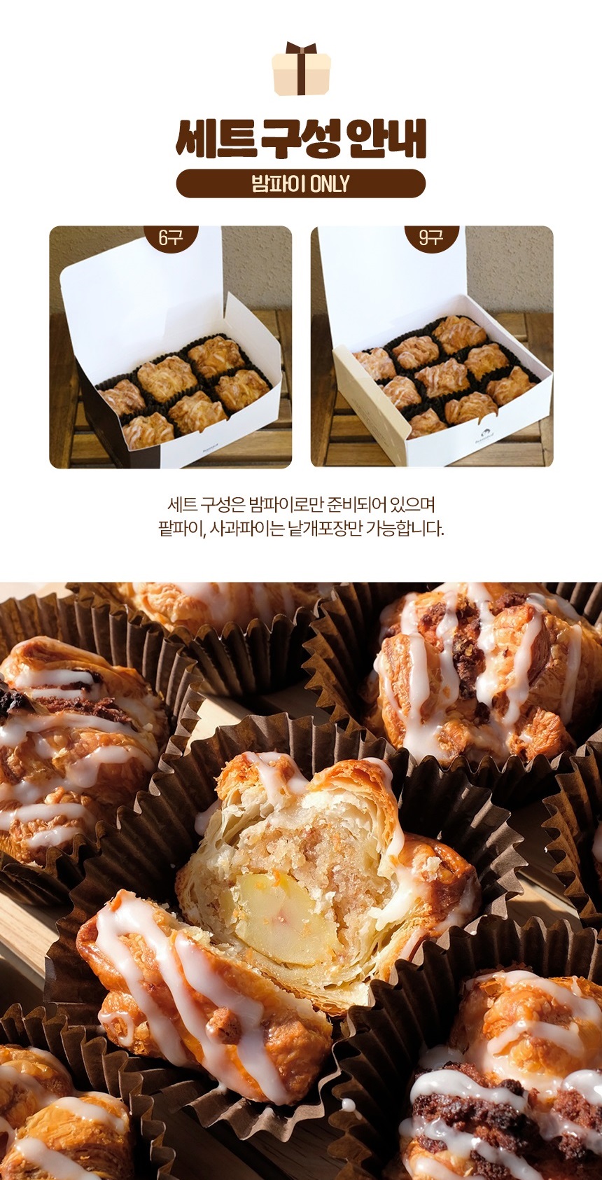 구성 : 밤파이 6구 + 하동허니 마들렌 + 하동말차 마들렌 입니다. :)