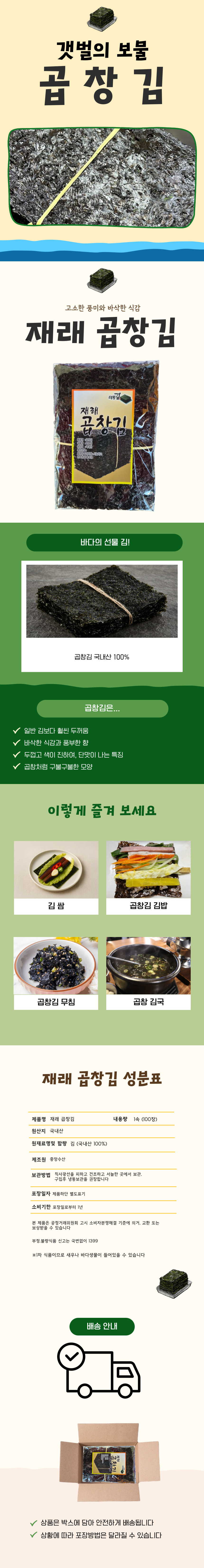 2026 갯벌 재래 햇 곱창김 100매