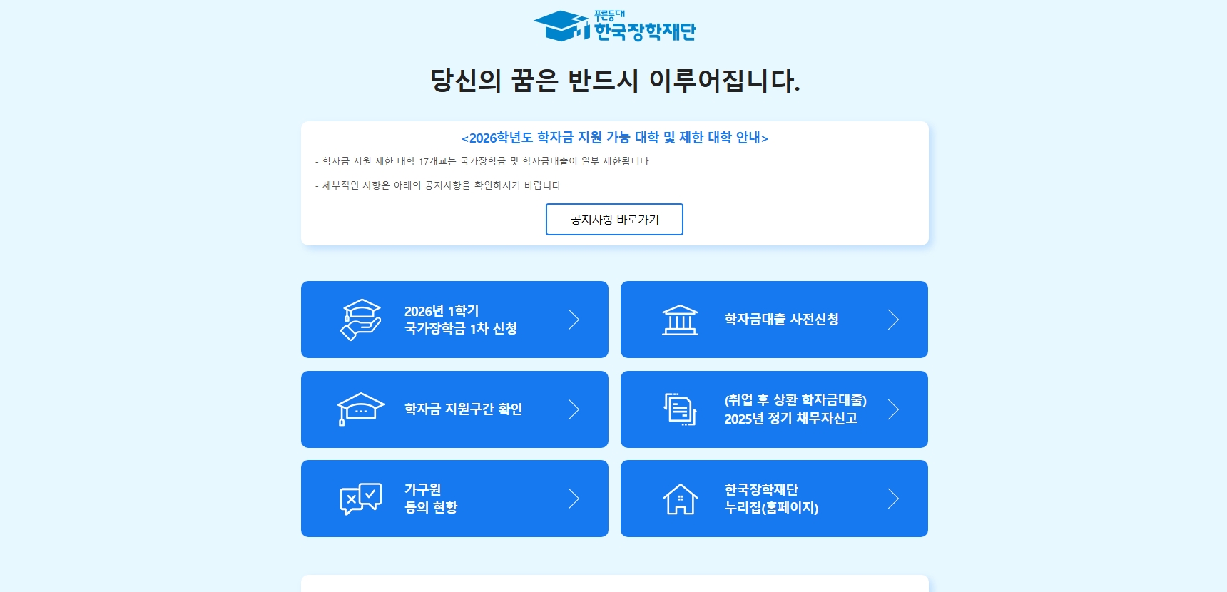 바로 '2026년 1학기 국가장학금 1차 신청' 입니다.